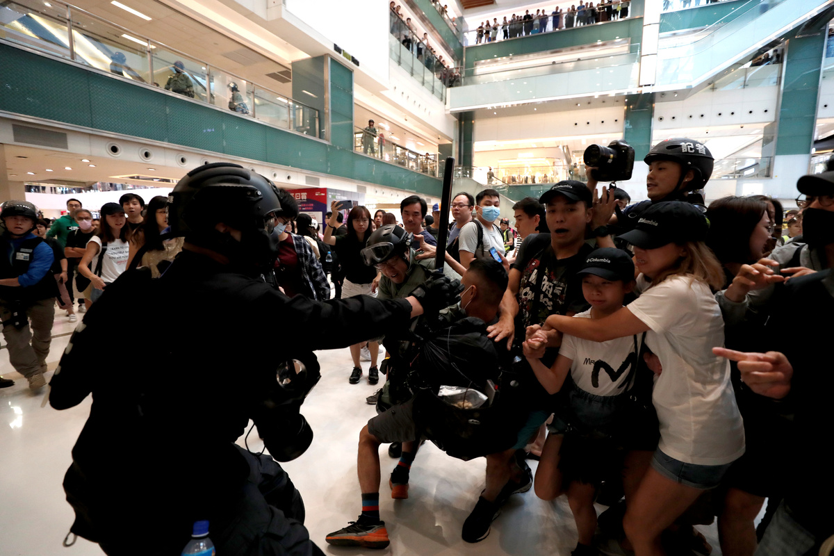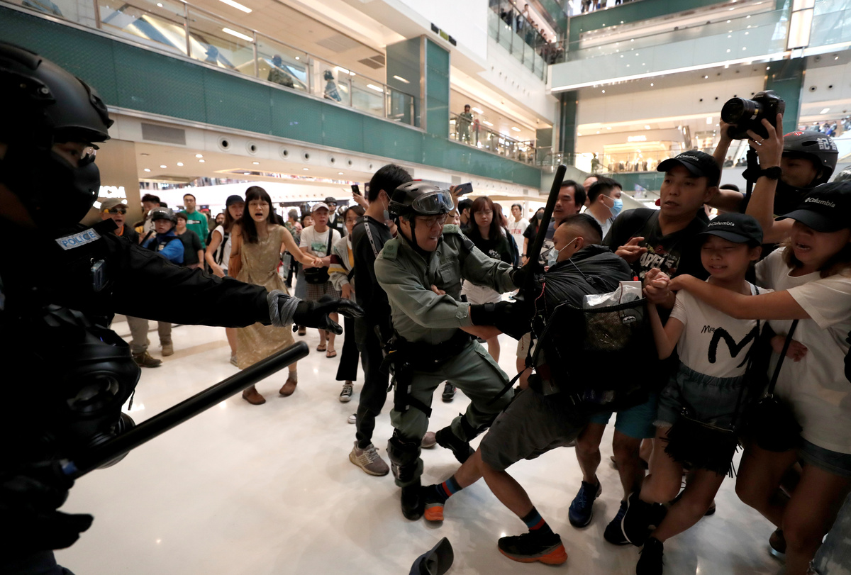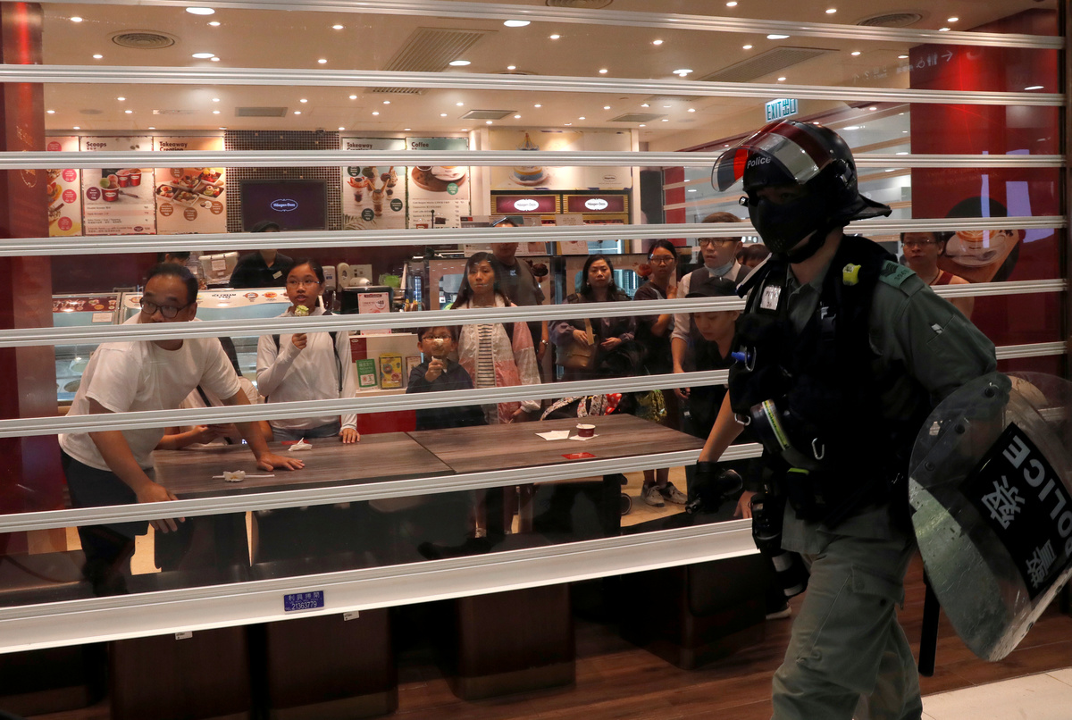Police said protesters had vandalised a restaurant in the mall after a peaceful chanting of slogans in the 22nd straight weekend of protests by Hong Kong people furious at perceived Chinese meddling in the former British colony which returned to Chinese rule in 1997.
