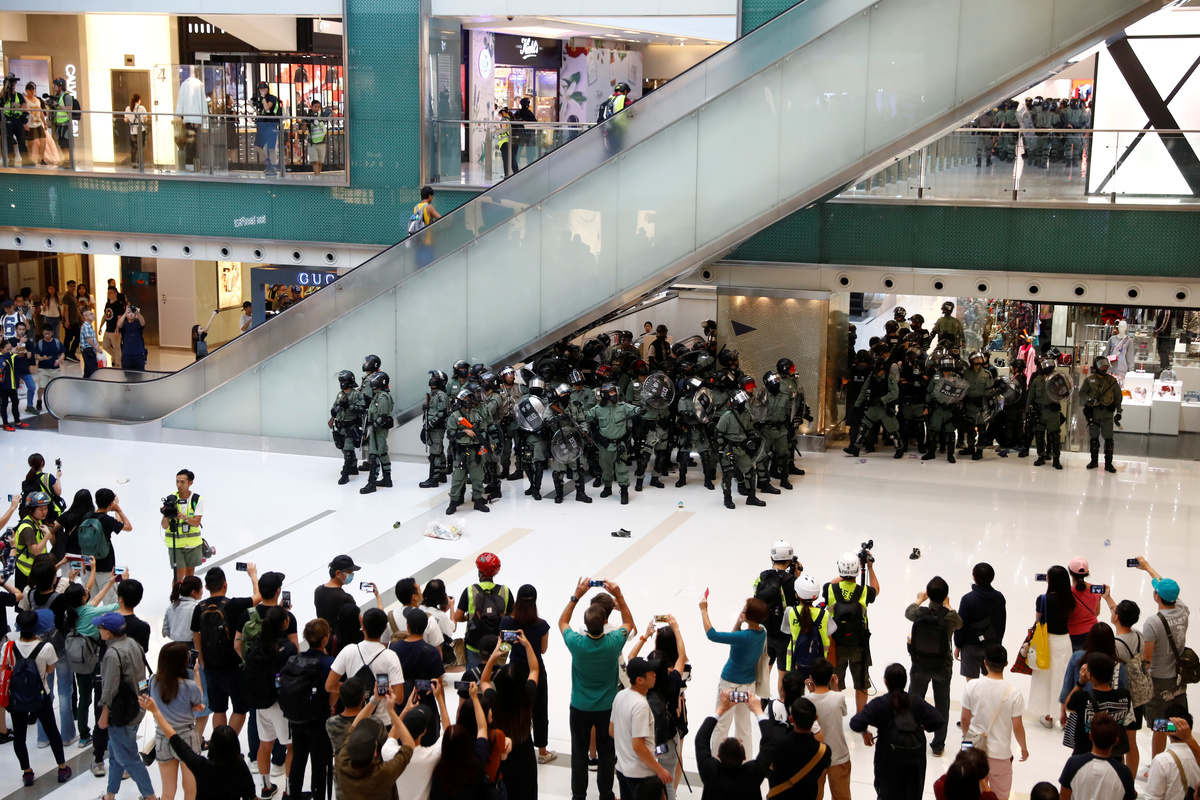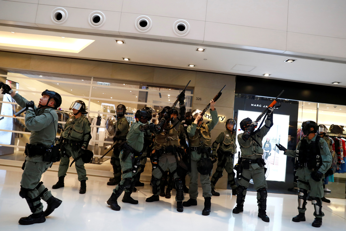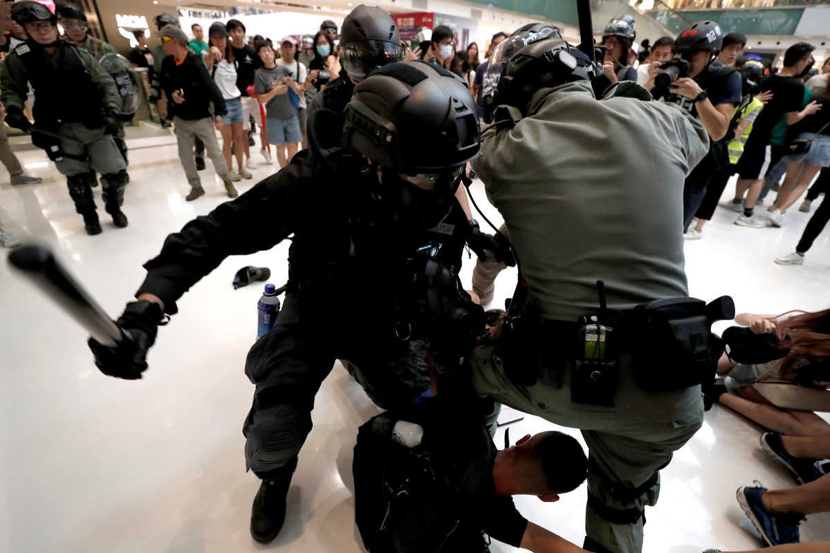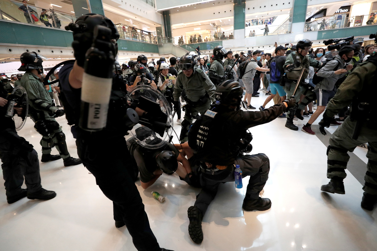 Police said protesters had vandalised a restaurant in the mall after a peaceful chanting of slogans in the 22nd straight weekend of protests by Hong Kong people furious at perceived Chinese meddling in the former British colony which returned to Chinese rule in 1997.