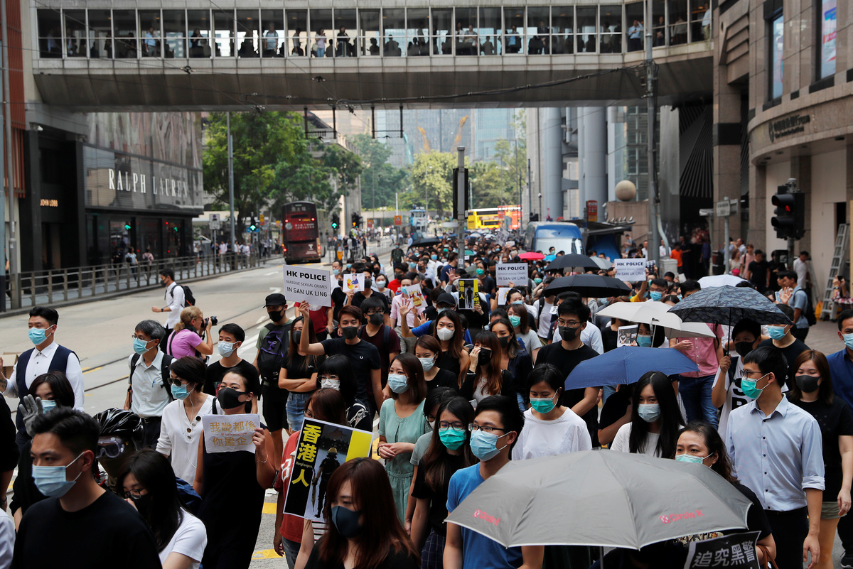 Chanting calls for their core demands and denouncing what they see as police brutality, the crowd peacefully occupied streets in the financial district, home to some of the world's most expensive real estate, before dispersing.