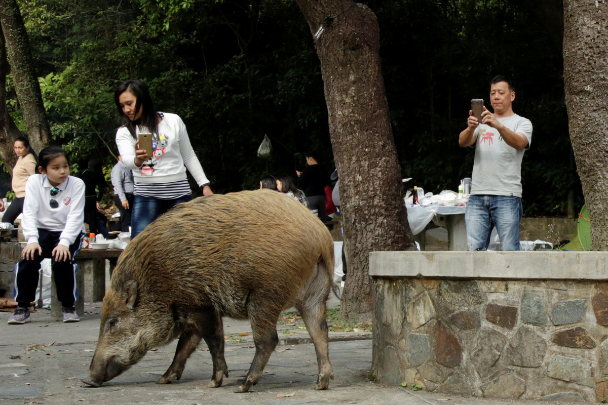HONG KONG (Reuters) - One of the world's most densely populated cities, Hong Kong, is facing a proliferation of wild boars as the large mammals stray increasingly into built-up areas.