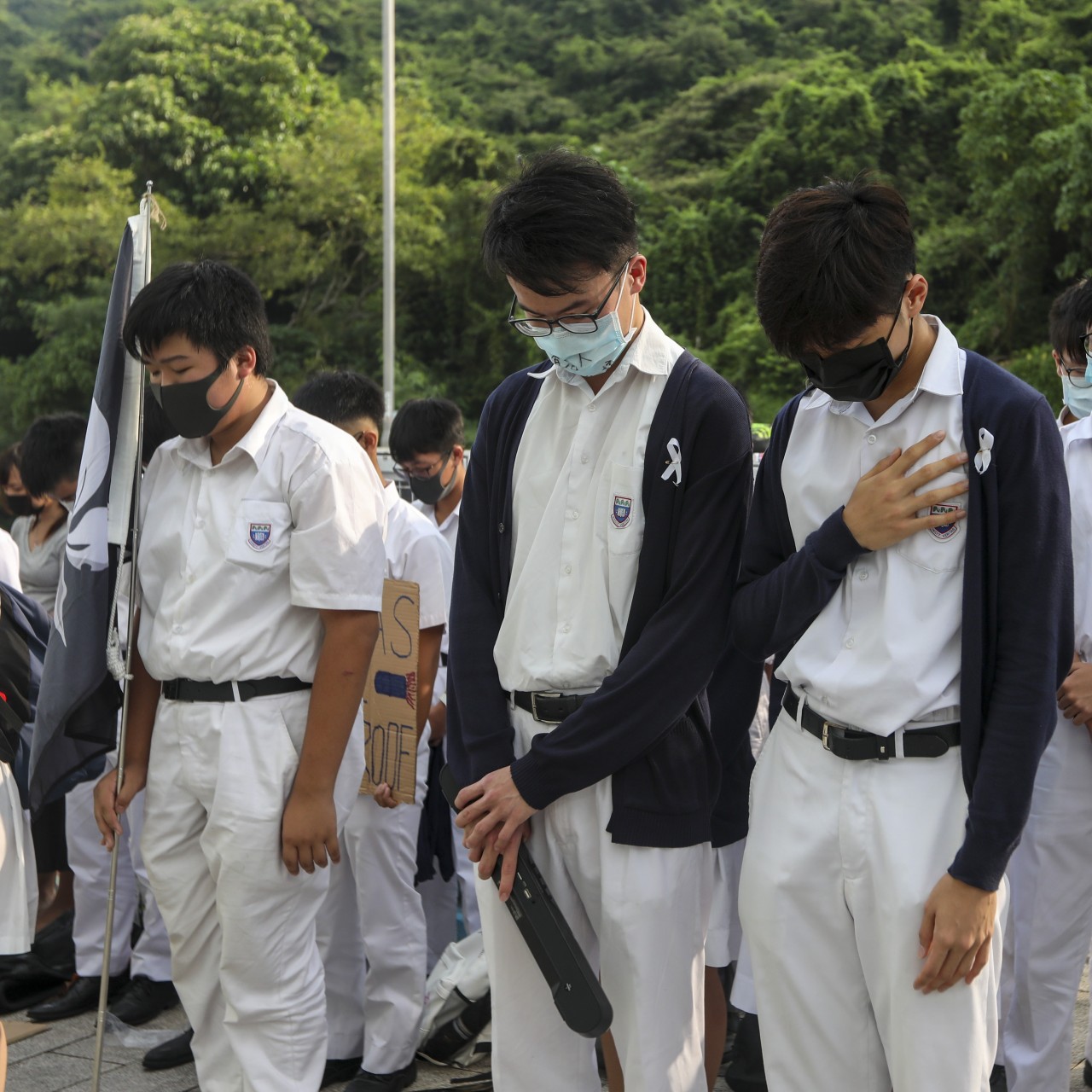 Christ College students opted not to wear masks because they feared repercussions of violating the new law, said Tam Siu-ching, 16.