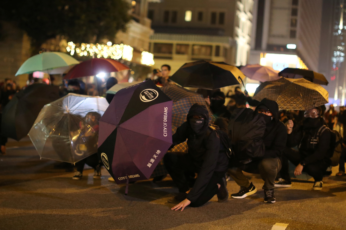Some demonstrators occupied the main roads and blocked traffic outside the malls and nearby luxury hotels in the Tsim Sha Tsui tourist district of Kowloon.