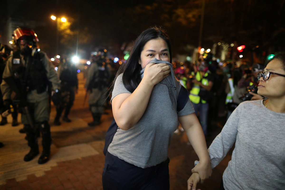 HONG KONG (Reuters) - Hong Kong riot police fired rounds of tear gas at thousands of protesters, many wearing masks and reindeer horns, after scuffles in shopping malls and in a prime tourist district as pro-democracy rallies escalated into Christmas Eve chaos.