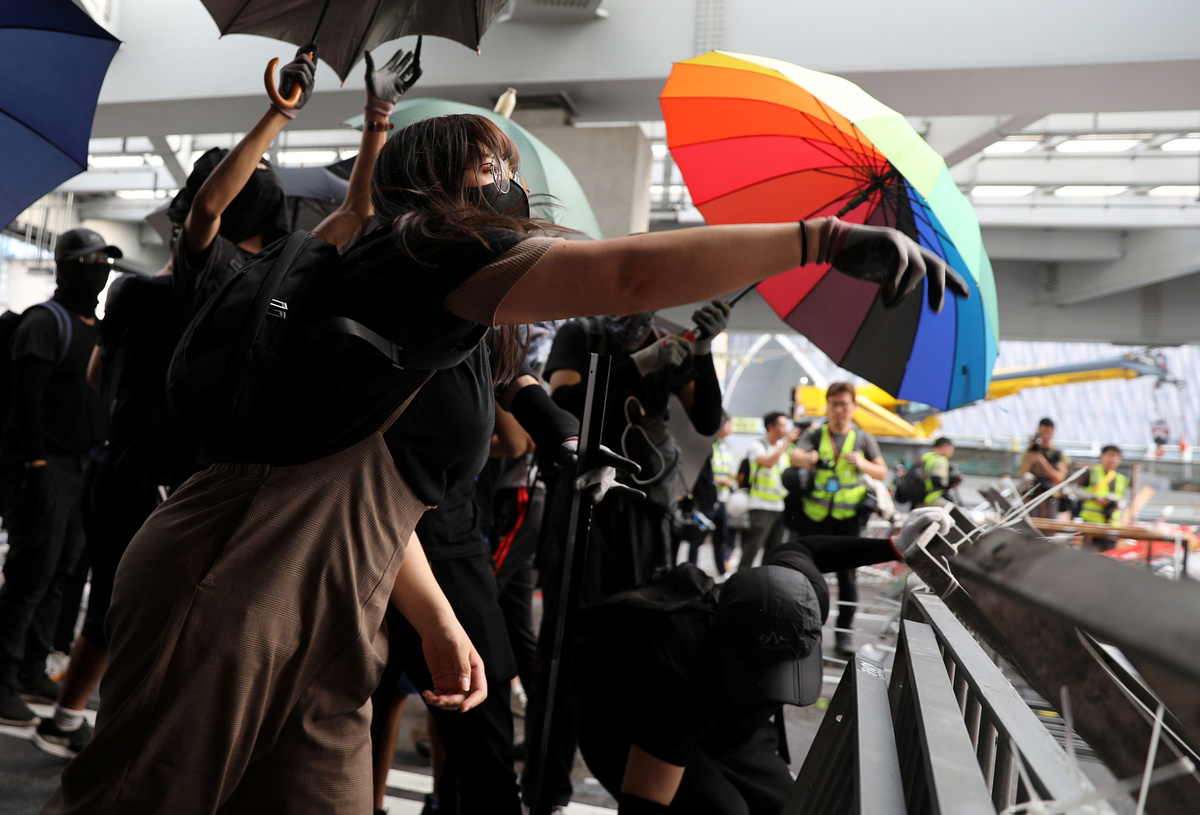 On Sunday, massive crowds occupied thoroughfares in several districts in Kowloon and moved northwards, smashing a number of businesses linked to China including banks, a bookshop and other stores.