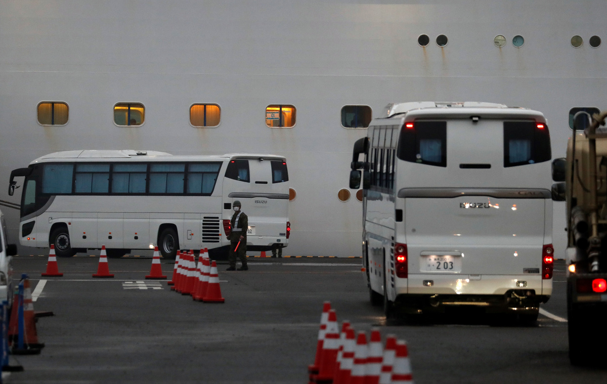 Another American passenger, Matthew Smith, posted photos on Twitter showing a fleet of more than 10 buses that took U.S. nationals from Yokohama port to the airport.