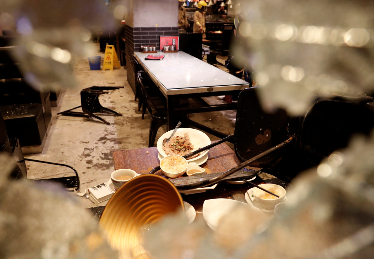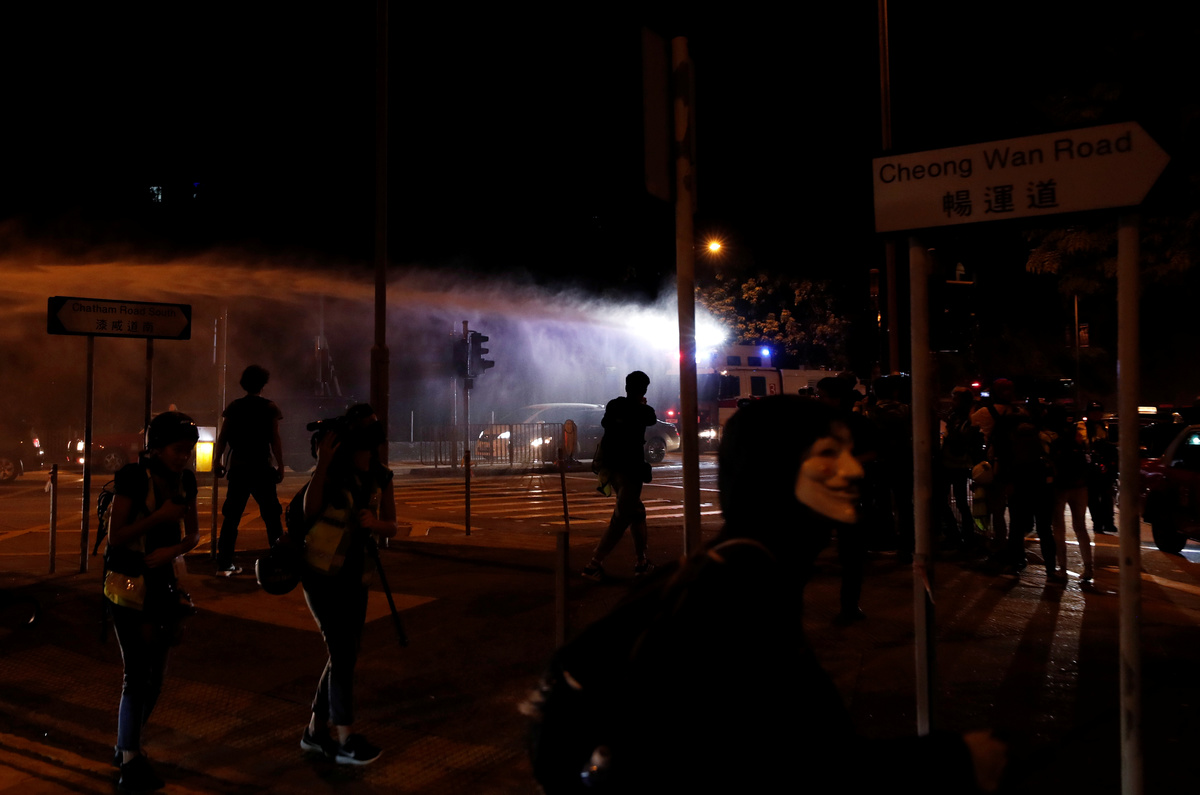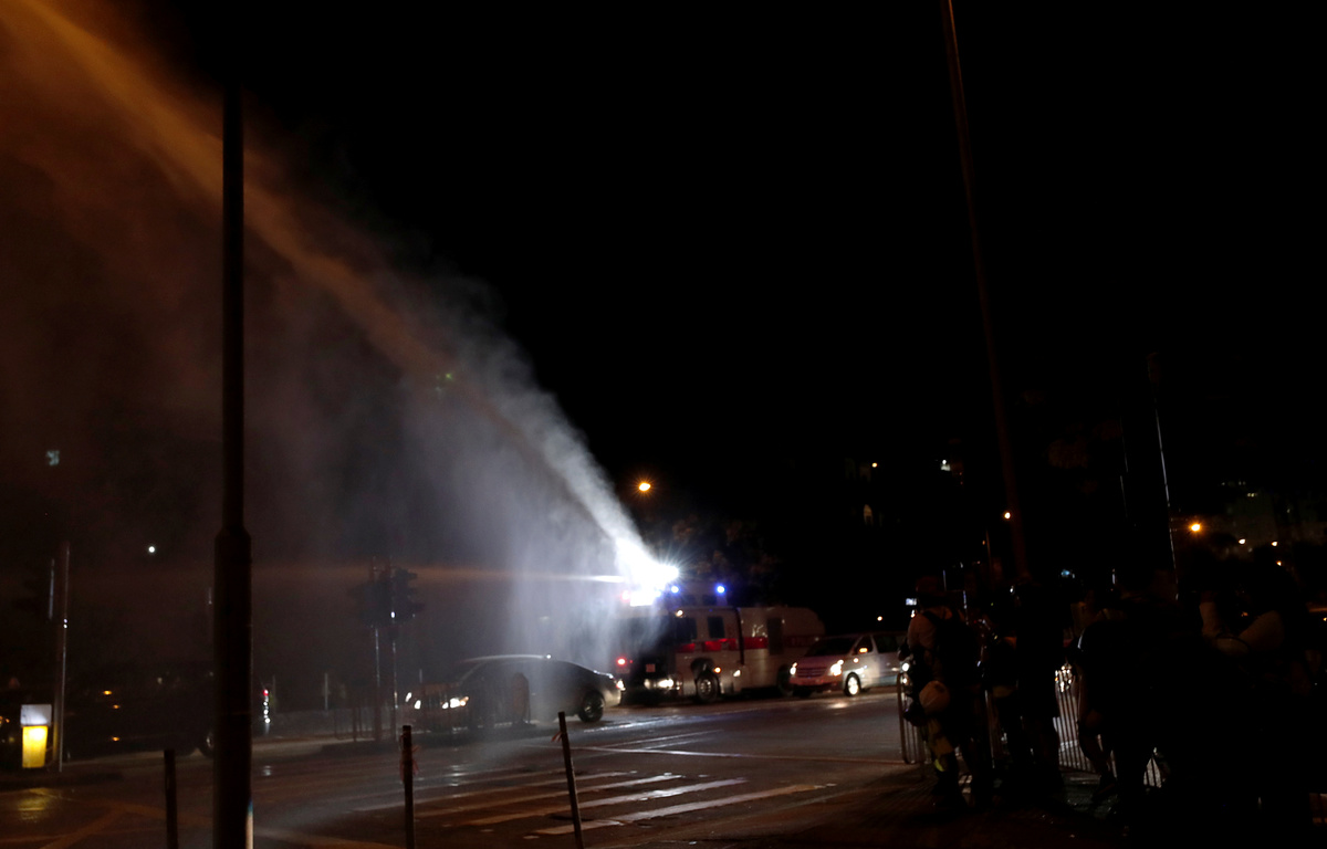 Some protesters vandalised traffic lights and a restaurant perceived as being pro-Beijing, prompting police to move in with the water cannon, near the science museum, as they have done on many nights during five months of demonstrations. Some protesters were detained while others ran off.