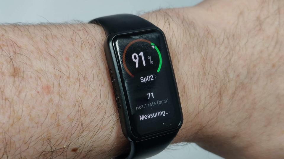There’s no GPS in the Band 6, so this is tracked by your phone - although only Honor and Huawei handsets are officially supported. The Band also features a pulse oximeter, which measures the oxygen saturation in your blood, which is also recorded in the app, but you will need to specifically trigger this to get a reading.