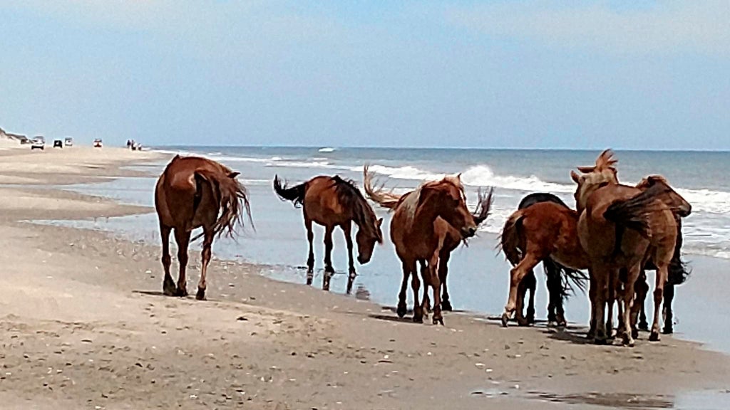 Hazel was part of a herd of about 100 Spanish horses that occupy a beach area north of Corolla off North Carolina’s coast. She “seemed to enjoy her role as honorary grandmother to the foals” and was often seen babysitting them, according to the organization.