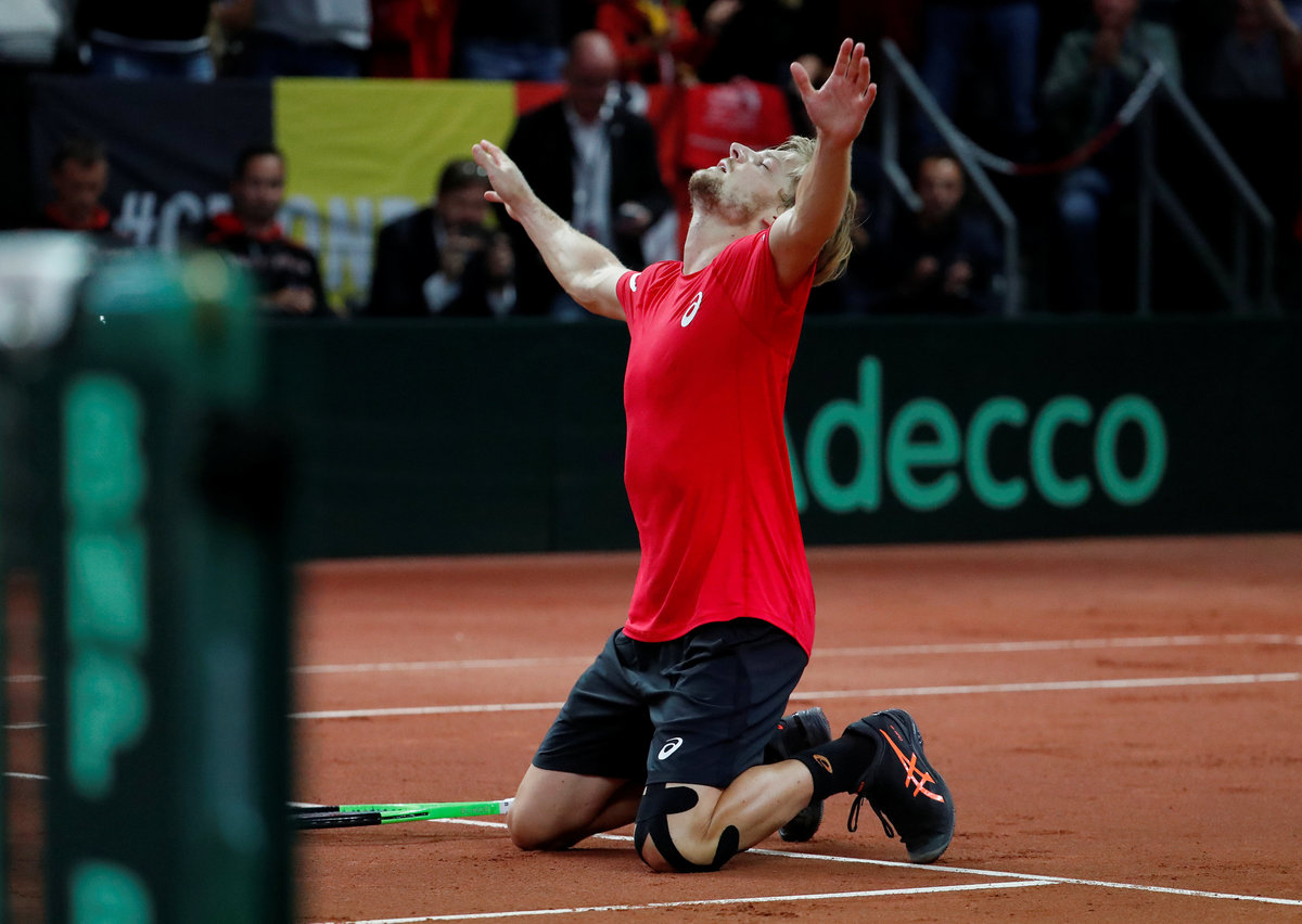 Tennis - Davis Cup - Semi-Finals - Belgium vs Australia - Palais 12, Brussels, Belgium - September 15, 2017 Belgium's David Goffin celebrates winning his match against Australia's John Millman REUTERS/Yves Herman