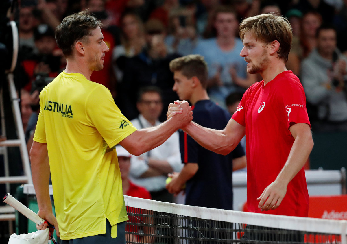 BRUSSELS (Reuters) - Belgium and Australia took one point each in two thrilling Davis Cup semi-final matches on Friday, with David Goffin returning from injury to beat John Millman and Nick Kyrgios overpowering Steve Darcis in five sets in Brussels.