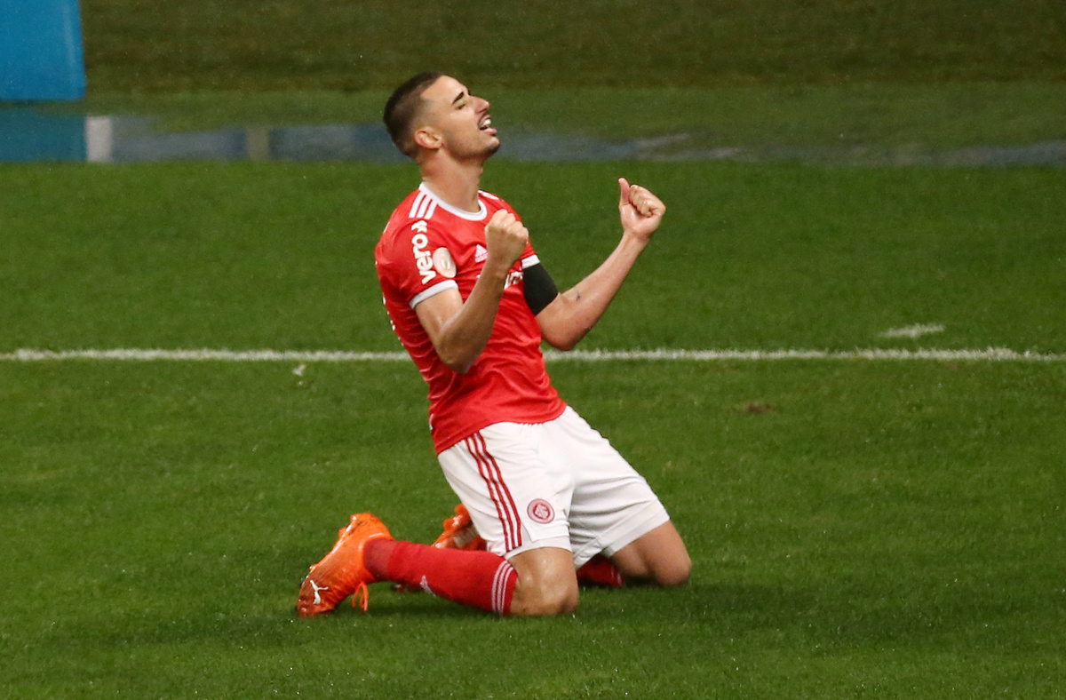 Soccer Football - Brasileiro Championship - Gremio v Internacional - Arena do Gremio, Porto Alegre, Brazil - October 3, 2020 Internacional's Thiago Galhardo celebrates scoring their first goal REUTERS/Diego Vara