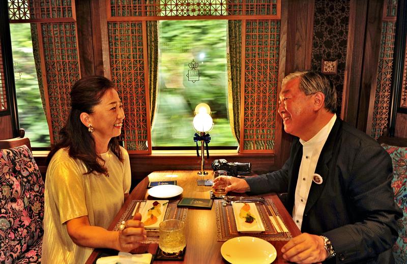 I got on the train at Yokohama Station in mid-September. There were 47 passengers that day, many of whom were couples or women. One of the couples, Tetsuo Oshima, director of a hospital in Sapporo, and his wife Yukiko, have ridden luxury sightseeing trains in various places. "You can enjoy the meal while looking at the view from the train window and talking with the crew," Oshima said.