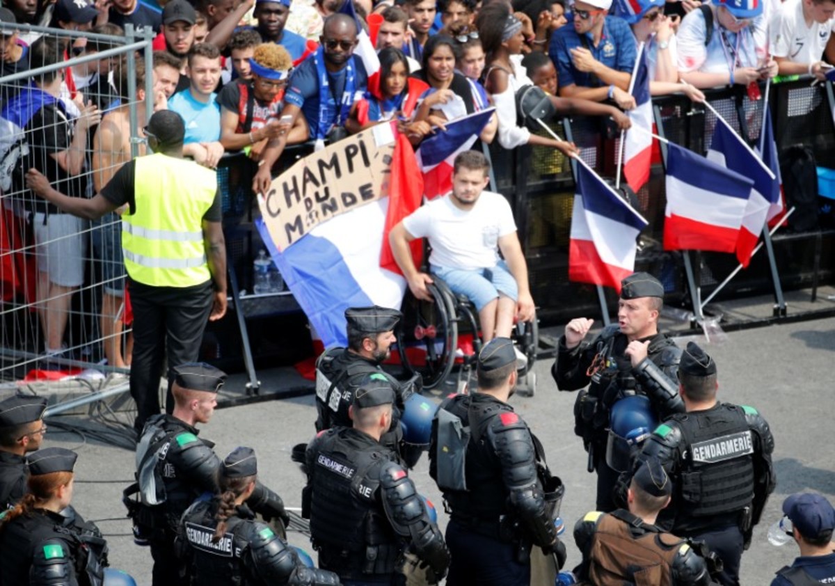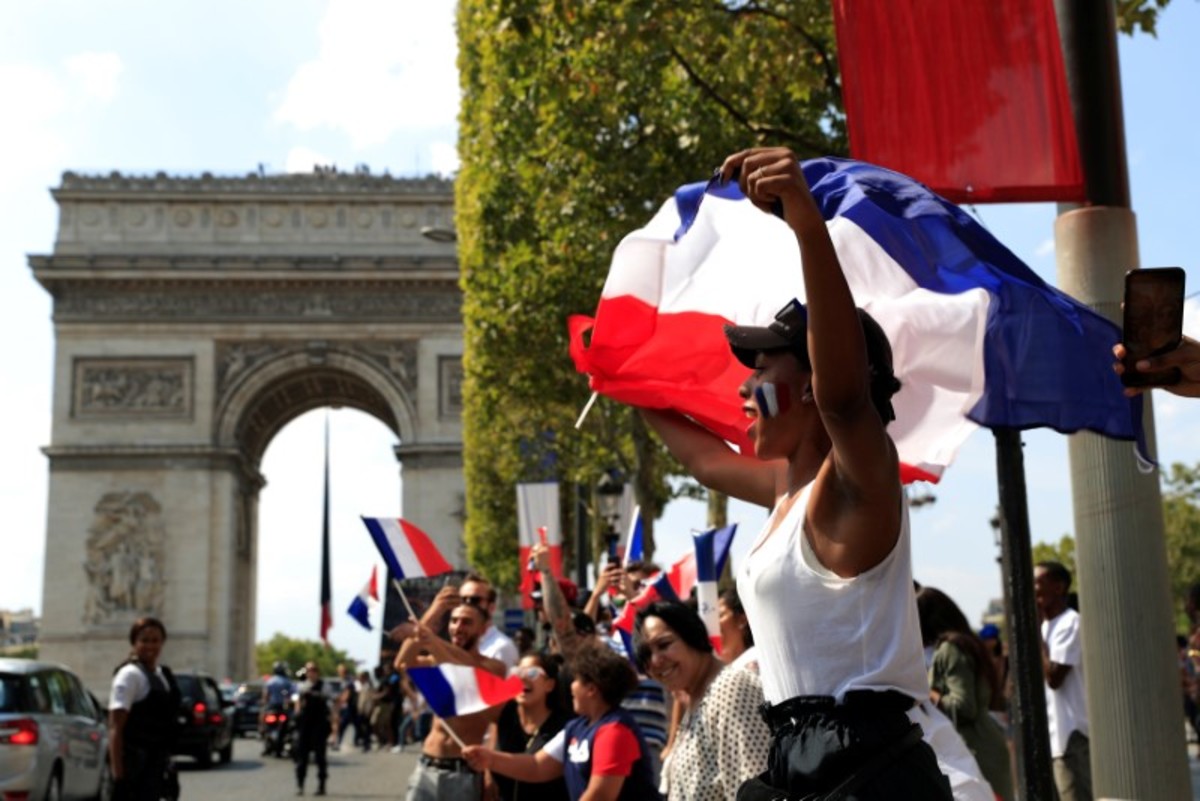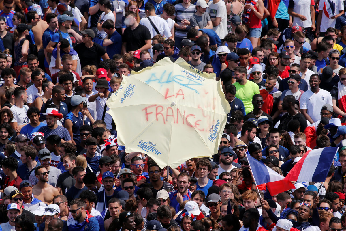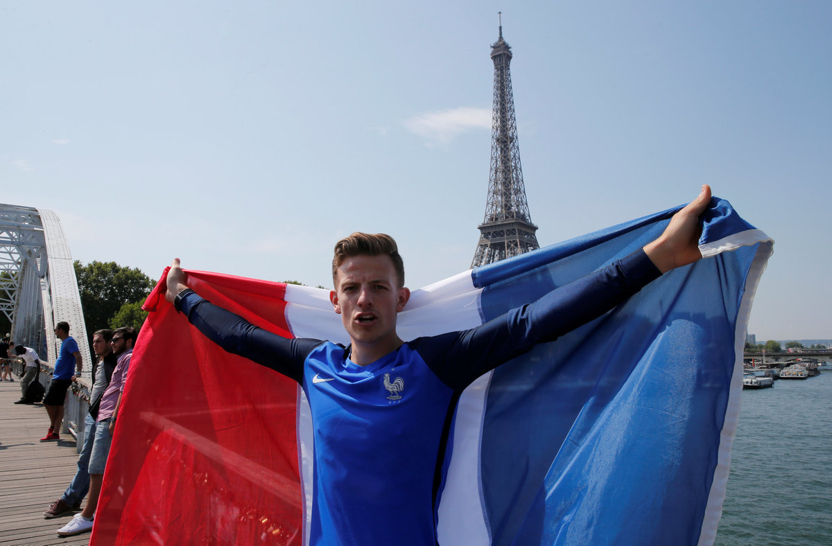 A day after the nation celebrated Bastille Day - the storming of a prison during the French Revolution in 1789 - with a late-night fireworks display over the Eiffel tower, large numbers congregated in the same spot to watch the final.