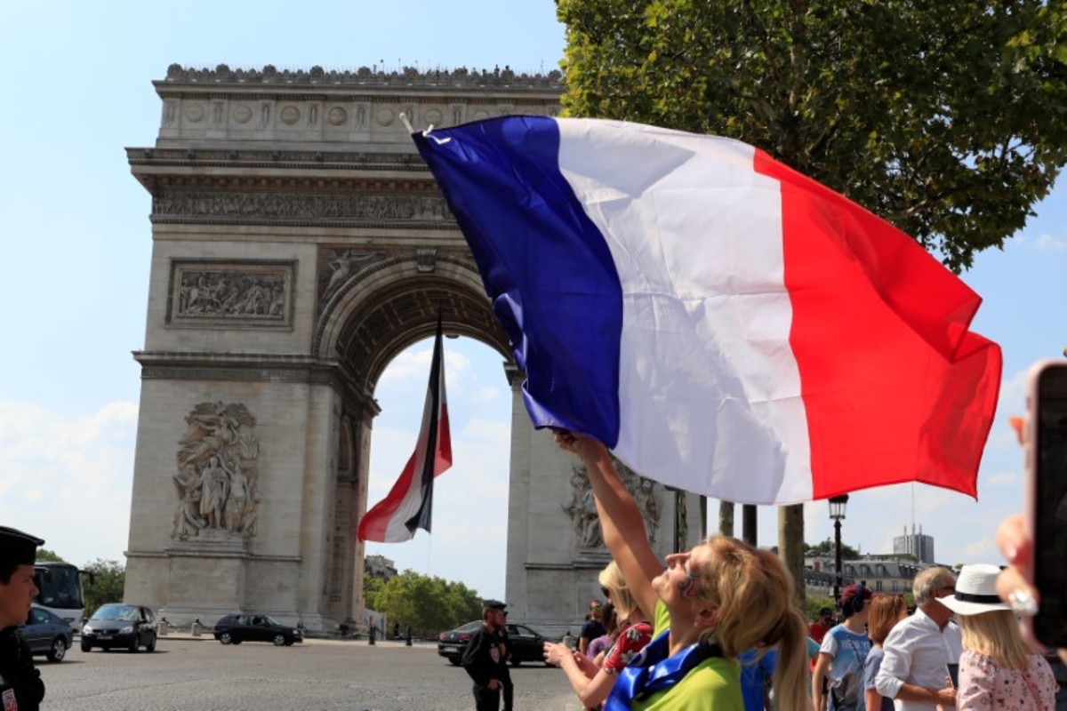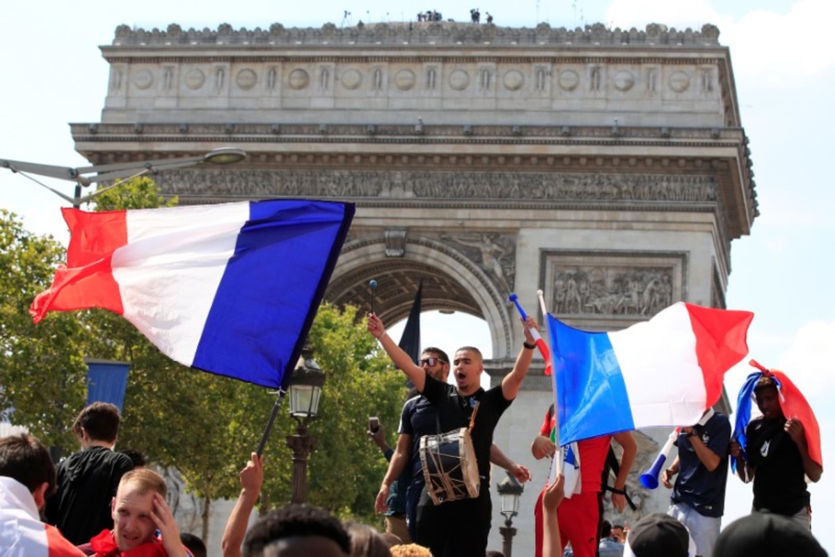 Along the Champs Elysees and at the Arc de Triomphe, French flags from the previous day's Bastille celebrations where still fluttering as some fans walked along the tree-lined avenue.