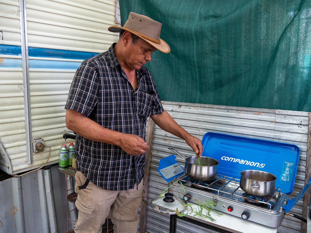 There is also a camp kitchen and yarning circle, where family members come together for meals and a cuppa after a hard day's work.
