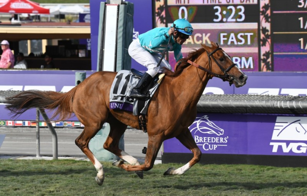 ARCADIA, Calif. (Reuters) - Uni accelerated down the stretch to win the $2 million Breeders' Cup Mile on Saturday at Santa Anita Park and triumph over second place finisher Got Stormy.