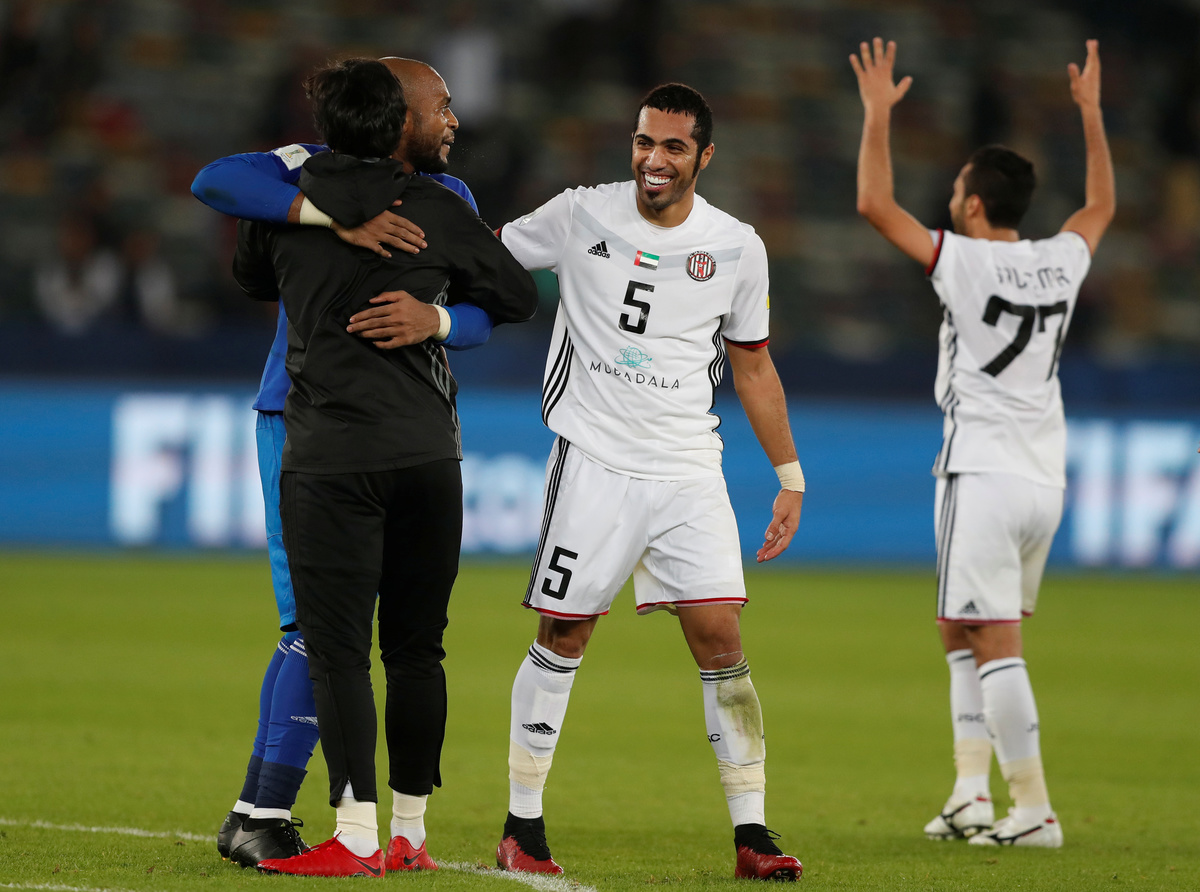 Soccer Football - FIFA Club World Cup - Al Jazira vs Urawa Red Diamonds - Zayed Sports City Stadium, Abu Dhabi, United Arab Emirates - December 9, 2017 Al Jazira players celebrate after the match REUTERS/Amr Abdallah Dalsh