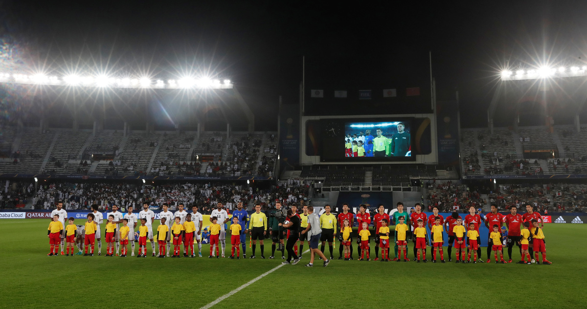 Soccer Football - FIFA Club World Cup - Al Jazira vs Urawa Red Diamonds - Zayed Sports City Stadium, Abu Dhabi, United Arab Emirates - December 9, 2017 Urawa Red Diamonds’ Yuki Muto in action with Al Jazira’s Salem Rashid (R) REUTERS/Ahmed JadallahSoccer Football - FIFA Club World Cup - Al Jazira vs Urawa Red Diamonds - Zayed Sports City Stadium, Abu Dhabi, United Arab Emirates - December 9, 2017 Al Jazira’s Ali Mabkhout celebrates scoring their first goal with team mates REUTERS/Amr Abdallah DalshSoccer Football - FIFA Club World Cup - Al Jazira vs Urawa Red Diamonds - Zayed Sports City Stadium, Abu Dhabi, United Arab Emirates - December 9, 2017 Al Jazira and Urawa Red Diamonds players line up before the match REUTERS/Matthew Childs