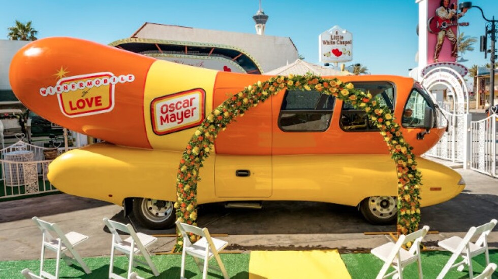 Oscar Mayer is turning its iconic Wienermobile into a wedding venue for 12 lucky couples who want to elope to Las Vegas and do something different.