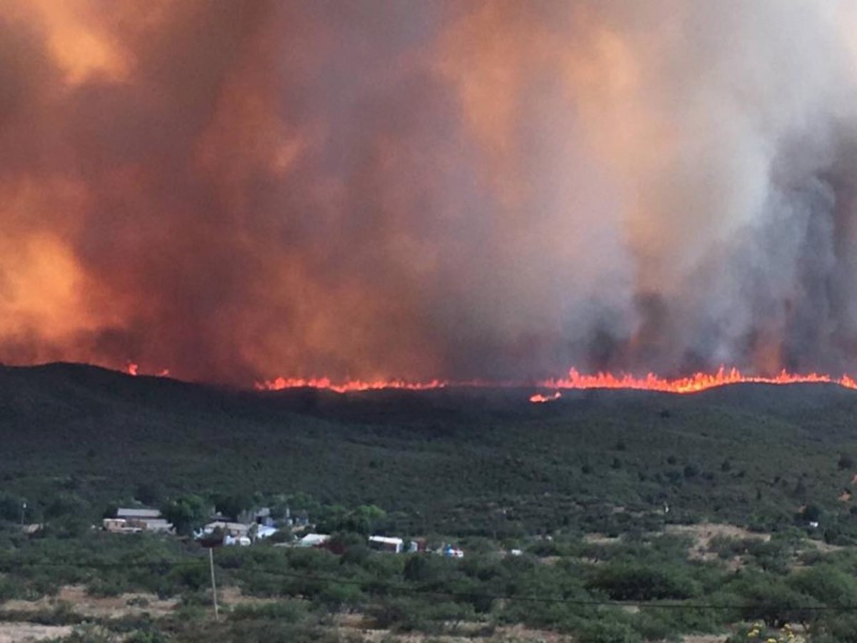 The blaze, dubbed the Goodwin Fire, has charred nearly 25,000 acres (10,120 hectares) and destroyed an unknown number of homes since erupting on Saturday in the Prescott National Forest, 70 miles (113 km) north of Phoenix.