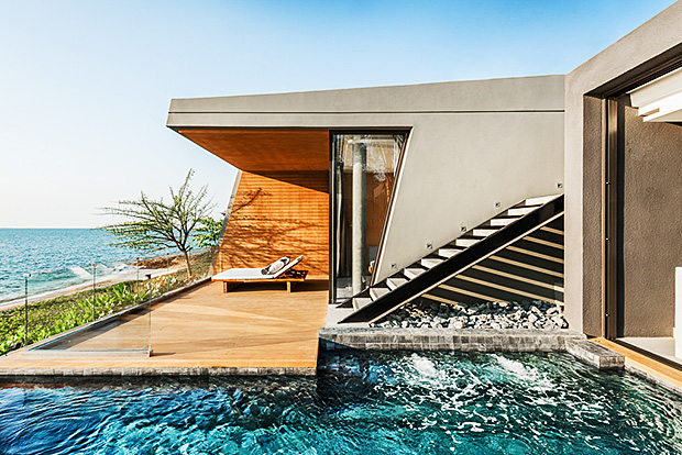 Designed by architect Vasu Virajsilp, this artistic beachfront resort, the latest to be a part of the Design Hotels collective, is in Na Jomtien Beach. The pool villas sit atop a hill where guests can enjoy scenic panoramic views of the roaring ocean waves and romantic sunsets.