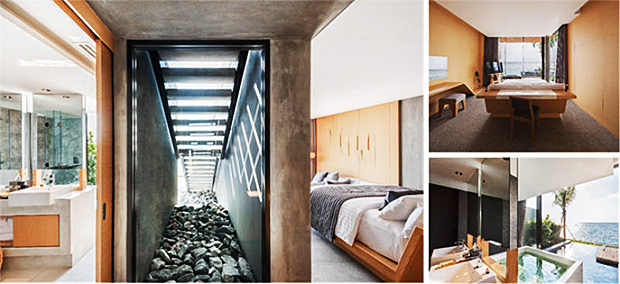 All of the hotel's suites and villas have distinct moon-like shapes. The new Garden wing of suites and villas are shaped like half moon whereas the Oceanfront wing of suites and villas are inspired by full moons.