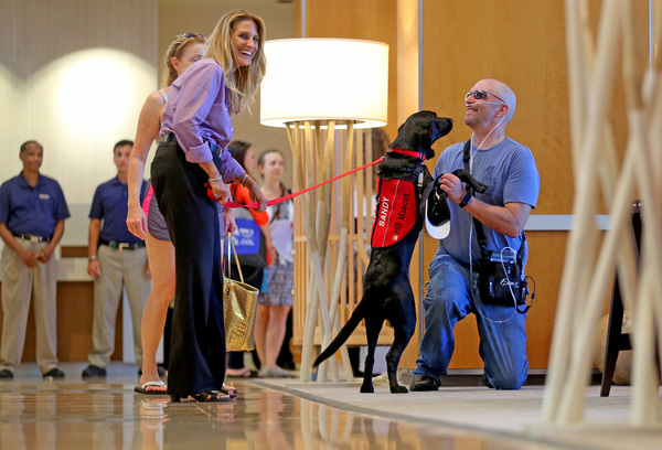 "It brightens up my day and makes it easier for me to breathe," said Rudolph, who lives in Davie and has two service dogs at home. "There is no such thing as a bad day when you're with a dog. I would have no problem if there was an official dog greeter at every Marriott."