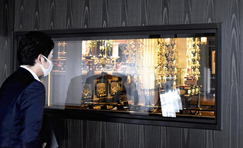 The 9-story hotel has 167 guest rooms and its lobby is also located on the first floor, separated from the temple by a 60-centimeter-long, 2-meter-wide window, which allows visitors a glimpse of the temple's main hall interior.