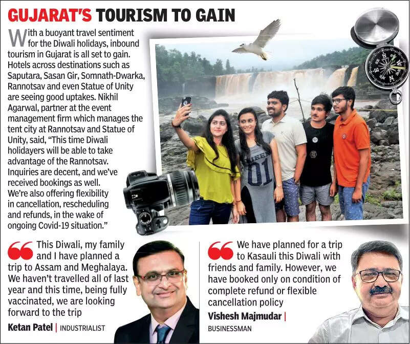AHMEDABAD: With an increasing number of people getting vaccinated and Covid-19 cases continuing to remain under control, holiday bookings for Diwali have begun gaining momentum.