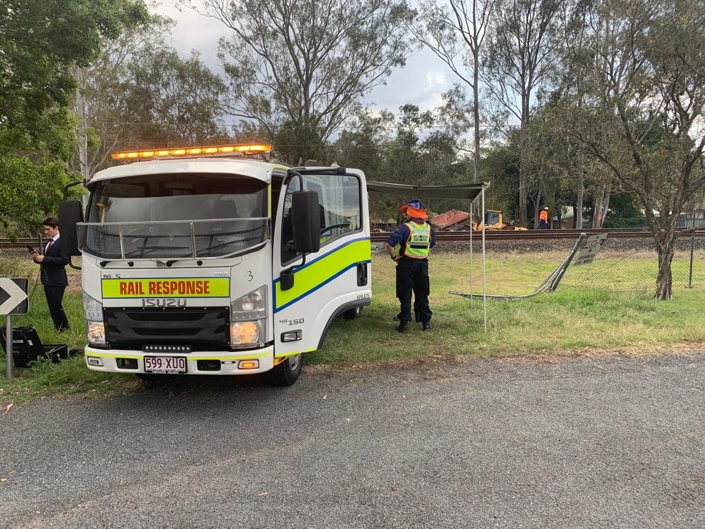 As the vehicle re-entered the rail corridor at Dinmore it become stuck in a ditch, police said.