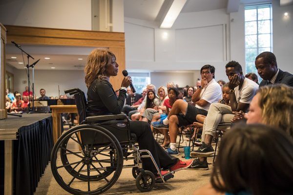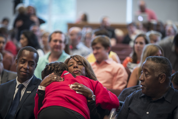 Seven hundred people packed the campus chapel for the emotional event, which featured hymn-singing, words of comfort, and many tears.