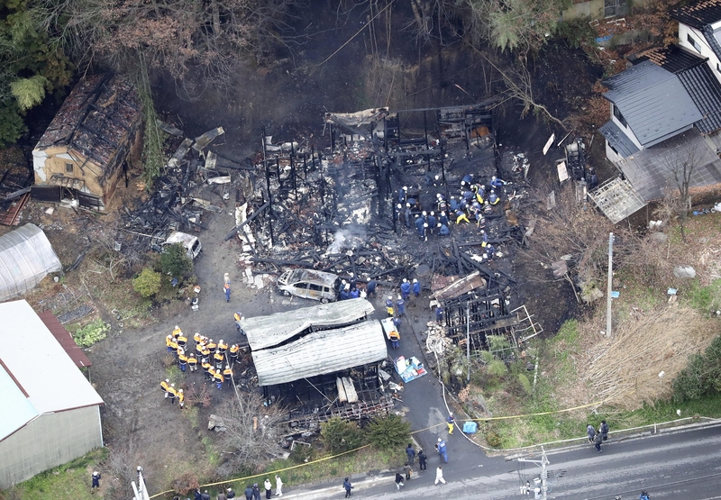 FUKUSHIMA -- The bodies of seven people were recovered from the site of a fire that destroyed a two-story house and storage facility in Ono, Fukushima Prefecture. A neighbor alerted police at about 11:05 p.m. Wednesday that the home of Tsuneyoshi Shiota, 61, had caught fire. The blaze was extinguished about an hour later.