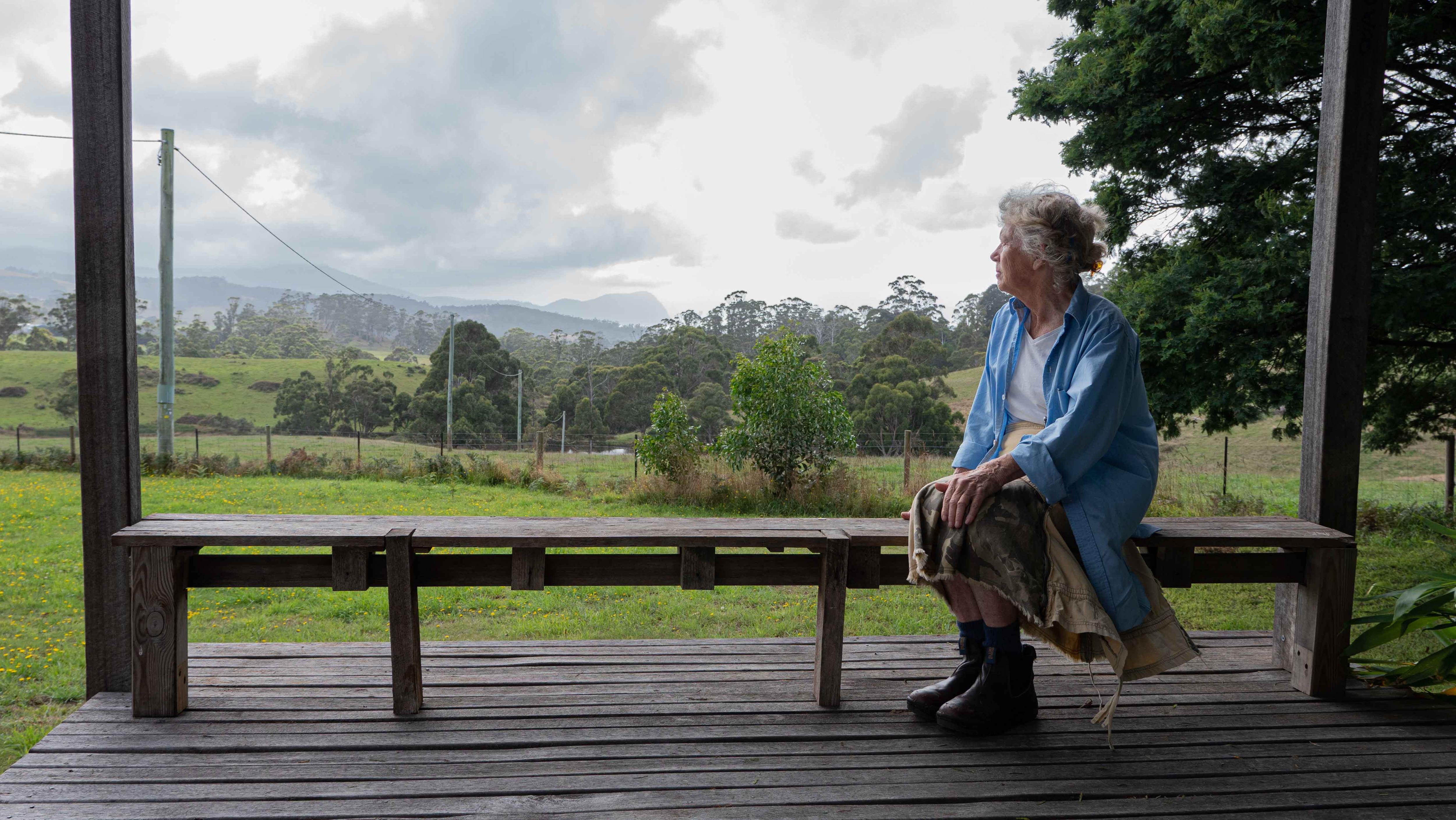 After the fires, a friend let Ms Hawkes live and work in a small studio on a property at Bream Creek that looked out to Hellfire Bluff across rolling countryside.
