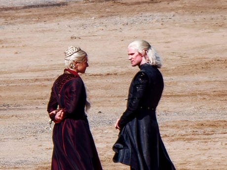 Matt Smith and Emma D’Arcy were spotted filming for the Game of Thrones prequel series at Holywell Bay Beach in Cornwall on Tuesday (27 April).