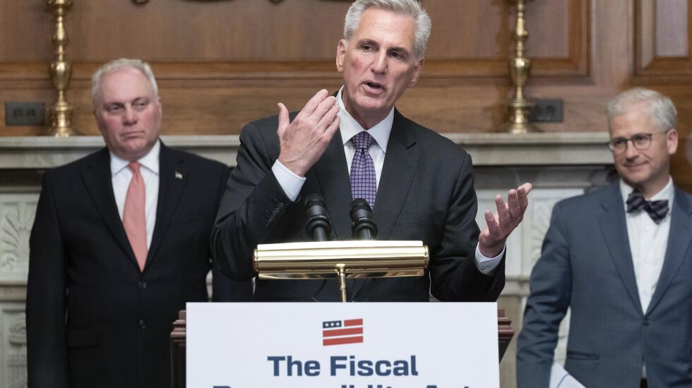 McCarthy insisted his party was working to “give America hope” as he launched into a late-evening speech extolling the bill’s budget cuts, which he said were needed to curb Washington’s “runaway spending.”