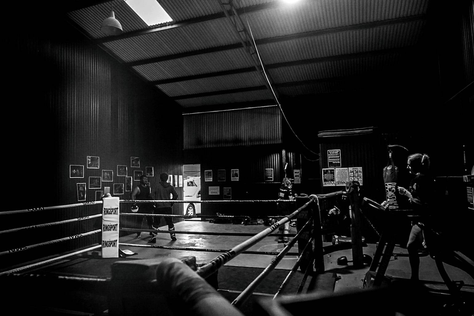 In a dark warehouse on the outskirts of Albany, 420 kilometres south-east of Perth, a boxing ring hunkers down in the shadows.