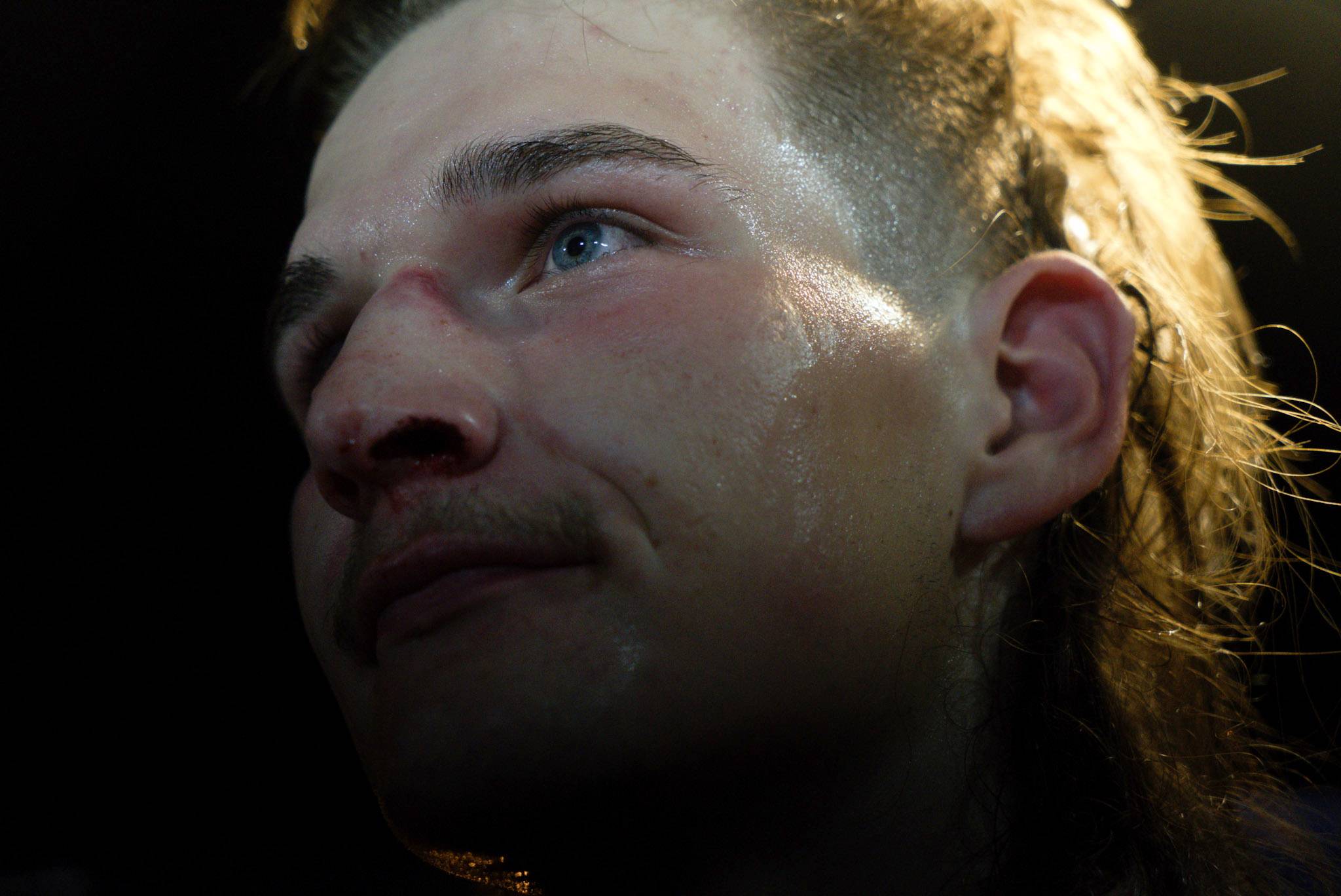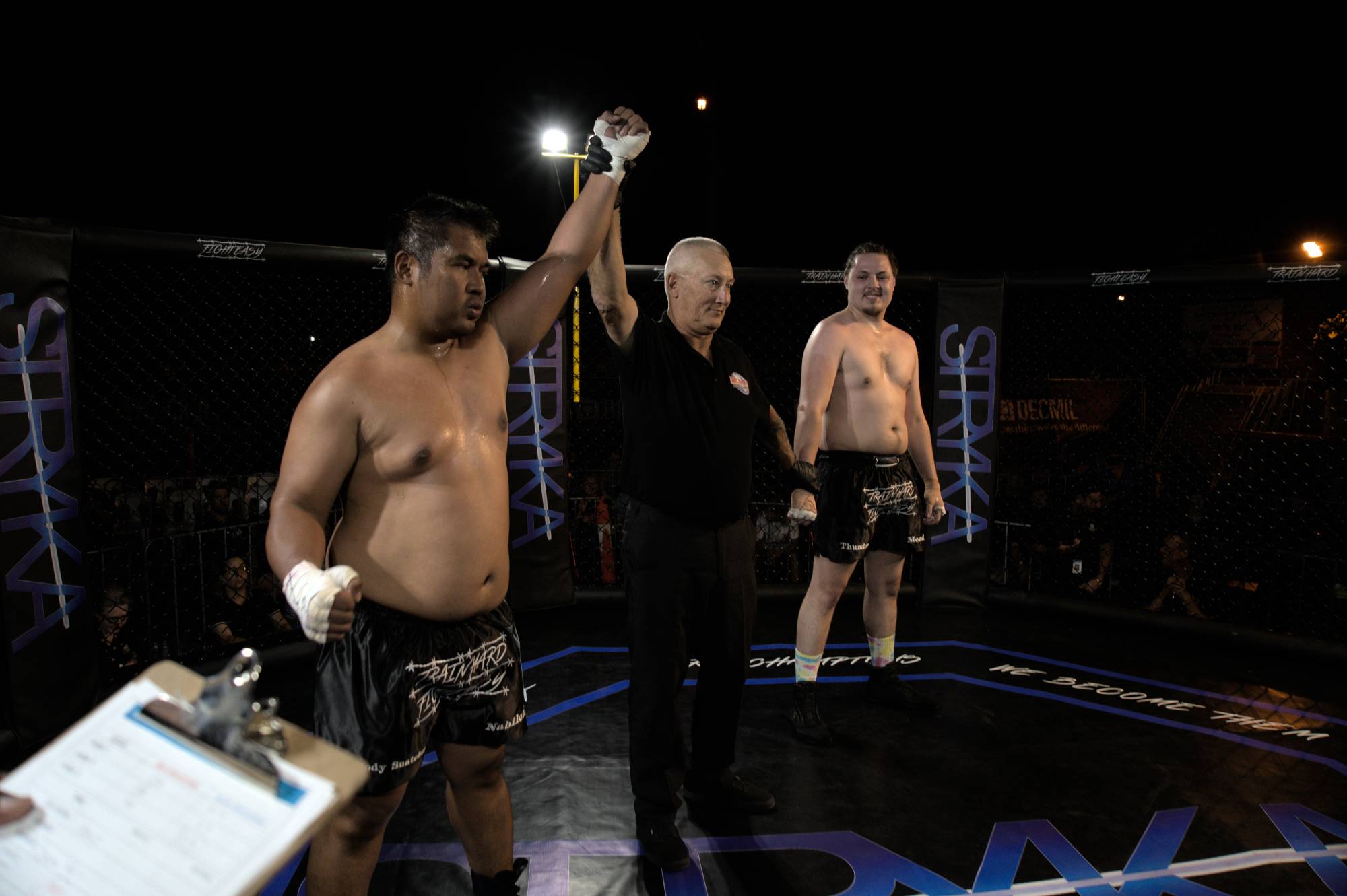 The spectators leap to their feet, cheering. For his efforts, Liam is also awarded fight of the night.