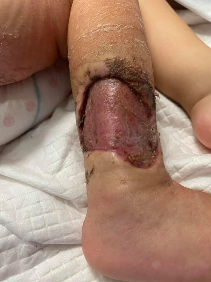 It started with a small purple dot on two-year-old Ellie Ross' leg, but ended up with eight surgeries and three trips to the ICU.