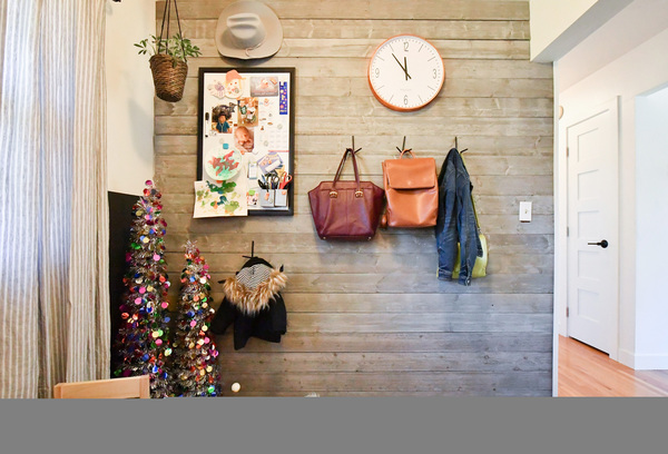 Finally, the Adamses closed off a doorway and converted the original narrow galley kitchen into a multifunctional flex space that serves as Archer's playroom, Lyndsie's home office and even a mini-mudroom with coat hooks on a far wall.
