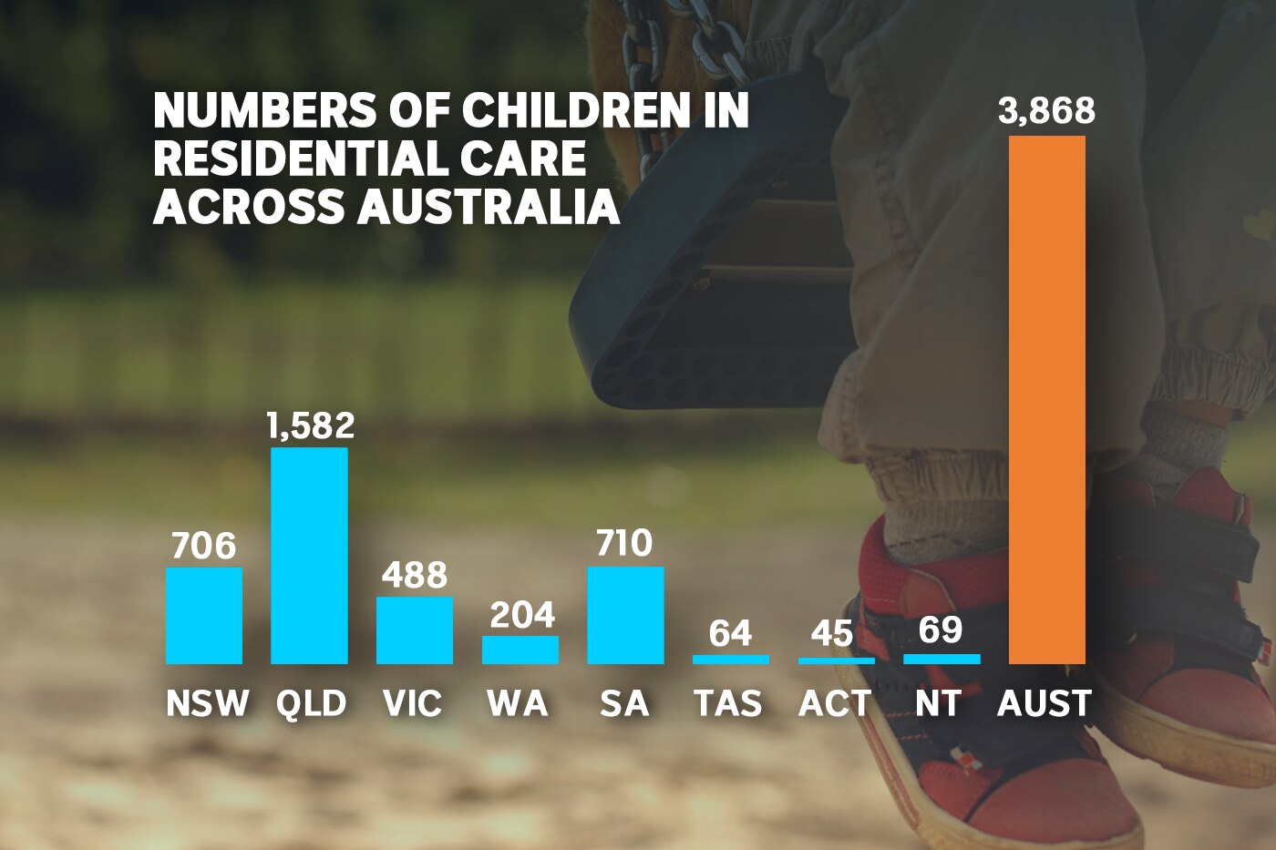 Currently 1,582 children are in residential care in Queensland, more than double the number in New South Wales -- 706 -- despite that state's higher population.