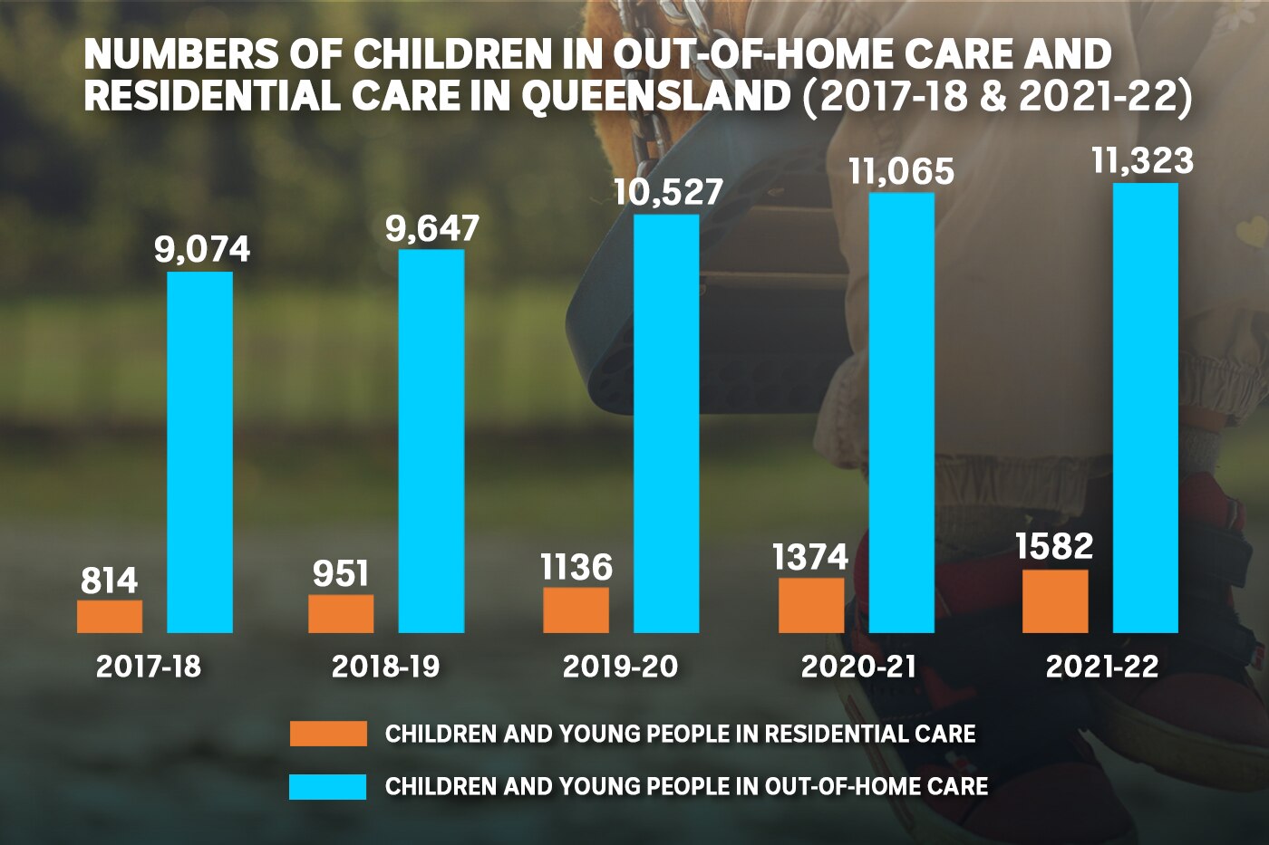 In a statement, a spokesperson for the Queensland Family and Child Commission said the number of children entering out-of-home care had increased by 24.7 per cent since 2017-18.