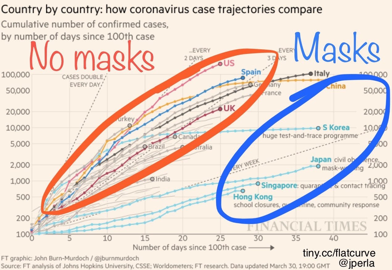 You probably haven't heard of the Curve Crushers, but you are connected to them. They are who first posted the doctored Financial Times graphic that compares coronavirus cases in countries with masks to cases in those without. It has since been shared by science reporters and the mayor of Medellín, Colombia. It appears in French news reports and on national television in Tunisia. It's seemingly, everywhere.