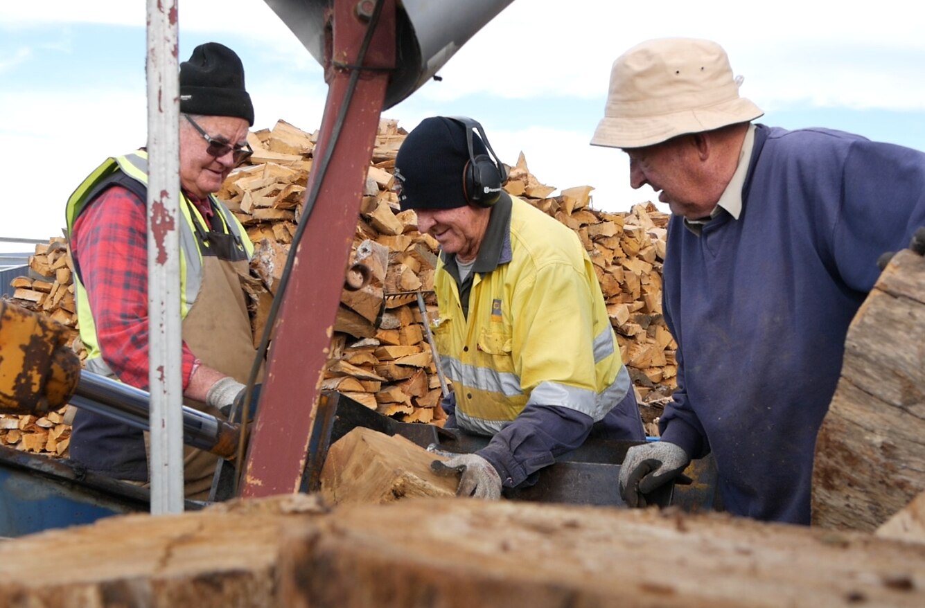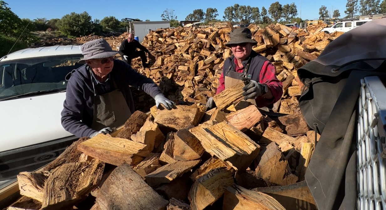 Every Wednesday morning during the colder months about 28 Esperance volunteers gather to chop donated timber.