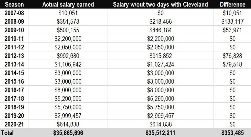 In total, Tolliver wound up pulling in $353,485 in extra NBA salary across his fourteen seasons in the league, all because of a day and a half win which he did not even have to suit up. And he owes it all to Sasha Pavlovic’s ambitious contract demands.