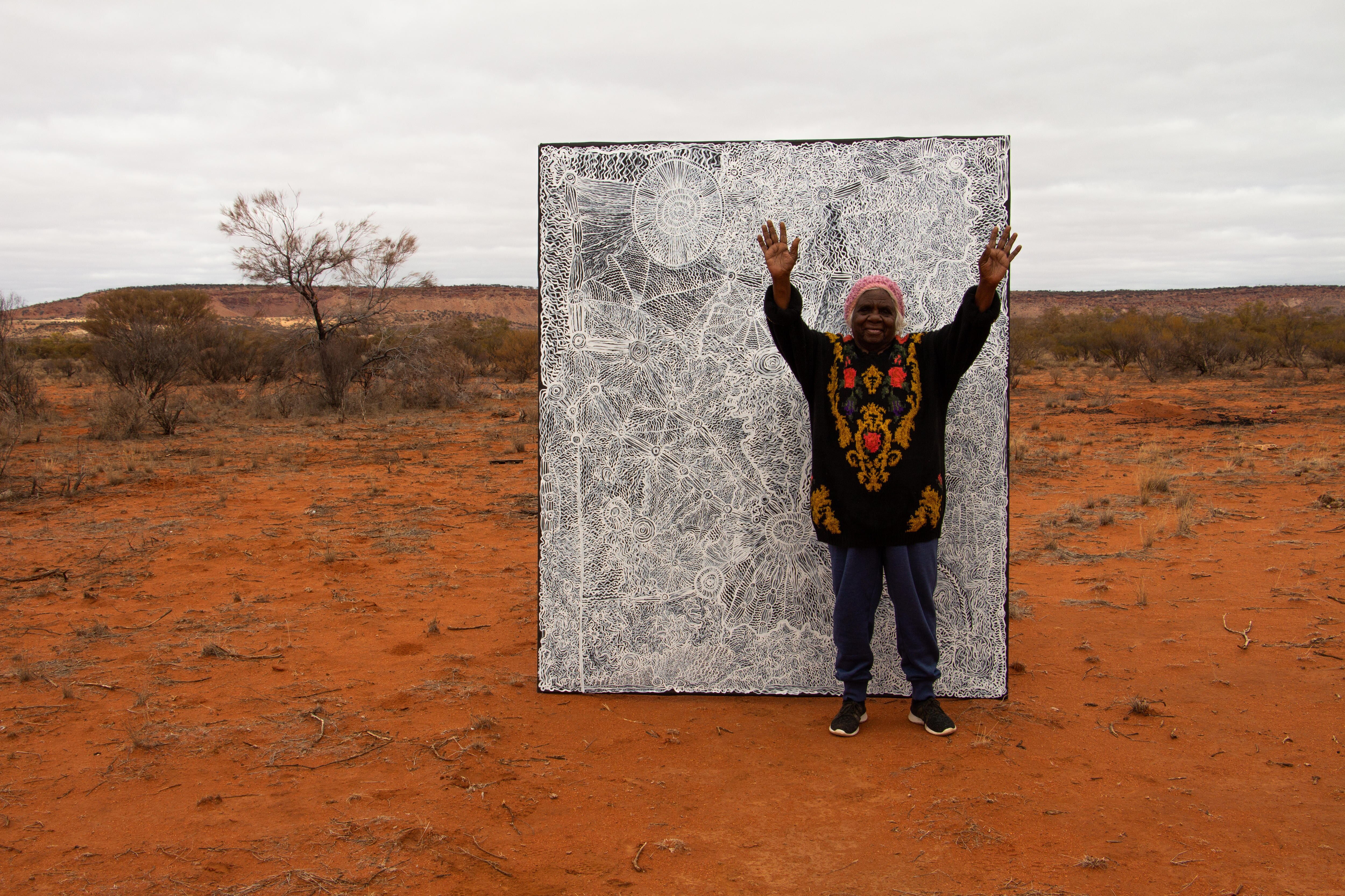 Sometimes, almost cheekily, she represents her hands in her artwork – although they are so deeply enmeshed in the interlacing network of pathways, rockholes and healing sites that only she (or niece Maringka Burton, with whom she collaborates) can see them.