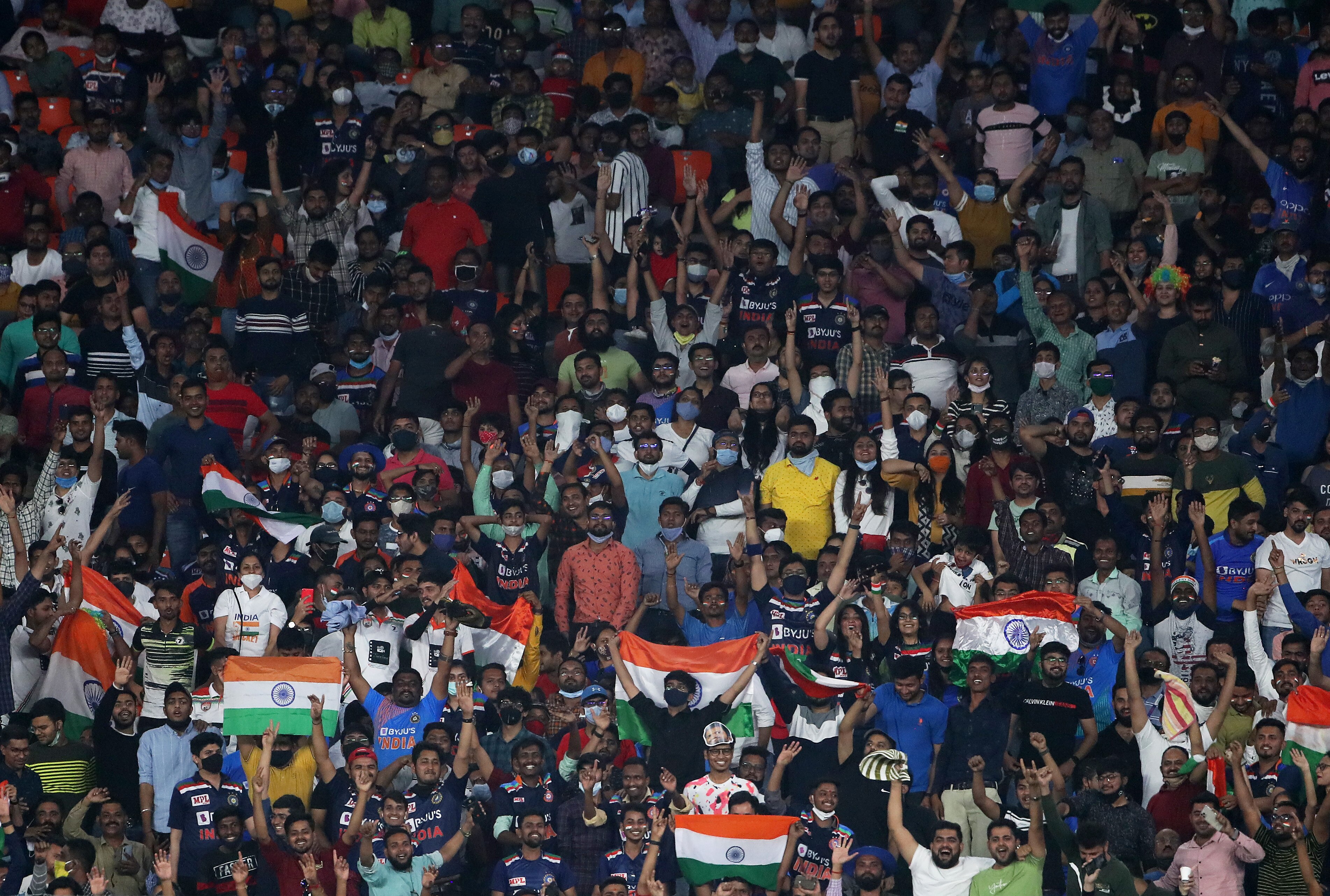 Every boundary is greeted with a wall of noise from the stands and the crowd whips itself into a frenzy as India compiles runs.