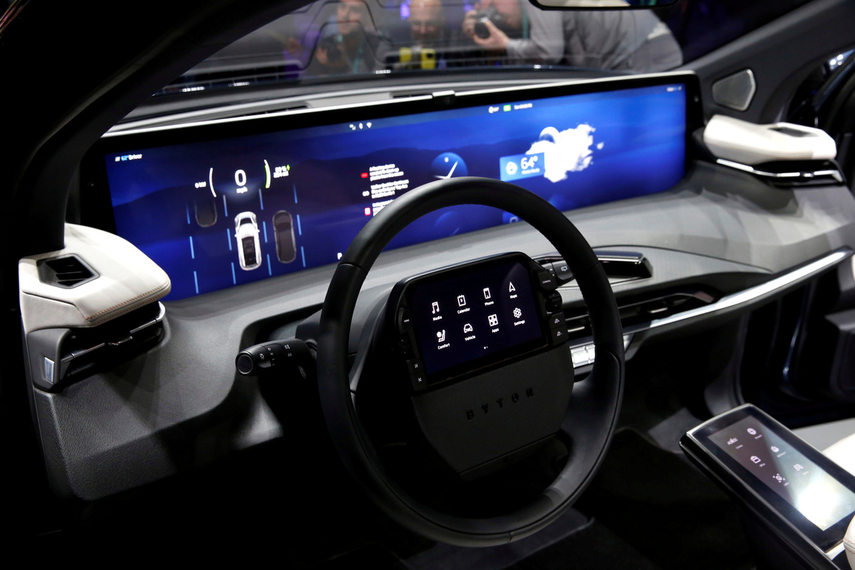 Chinese carmaker Byton's new M-Byte sedan features a 48-inch screen as a dashboard, as well as a steering-wheel display and a digital tablet for passengers. When parked, the car can be an office, enabling video conference calls, or a roadside cinema.