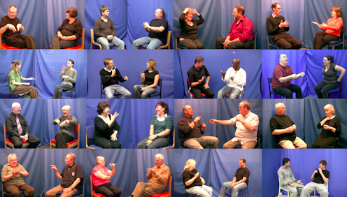 To understand this variation better, we (a team of deaf and hearing researchers) created the BSL Corpus Project. A corpus is a collection of linguistic data, created specifically as a representative sample of a community’s language. What we created is a unique repository of the rich variation in the sign language of the British deaf community, an often overlooked but vital part of the UK’s cultural and linguistic heritage.