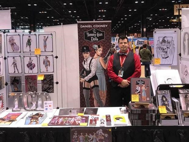Cooney also admits that crowdfunds can be tough. He says he felt like he had just completed a theses for an MFA (Master of Fine Arts) during the preparations for his successful Tommy Gun Dolls campaign. Even so, he’s leaning towards diving in a second, and perhaps a third, time: to complete the story of his Tommy Gun Dolls he needs to publish two more books.