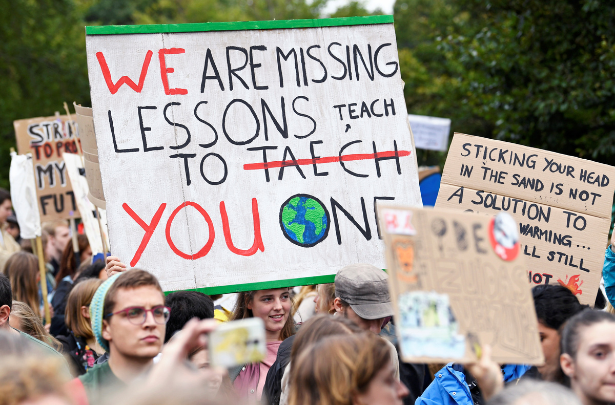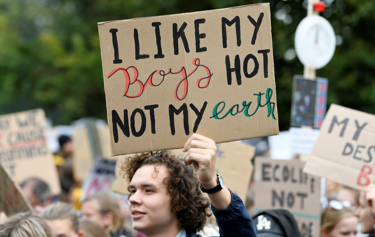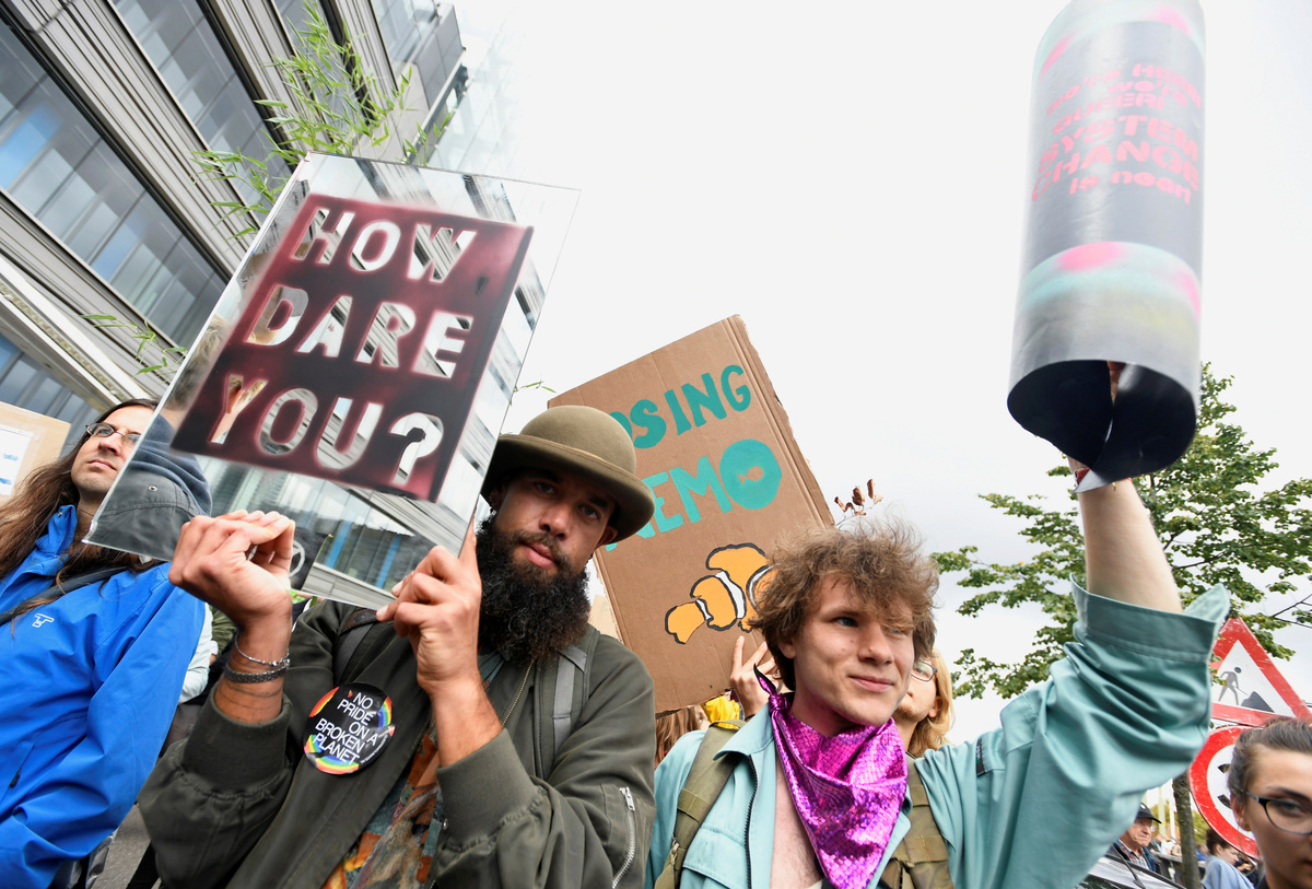 Schoolchildren, students and activists attend a protest march to call for action against climate change, in The Hague, Netherlands September 27, 2019. REUTERS/Piroschka van de Wouw